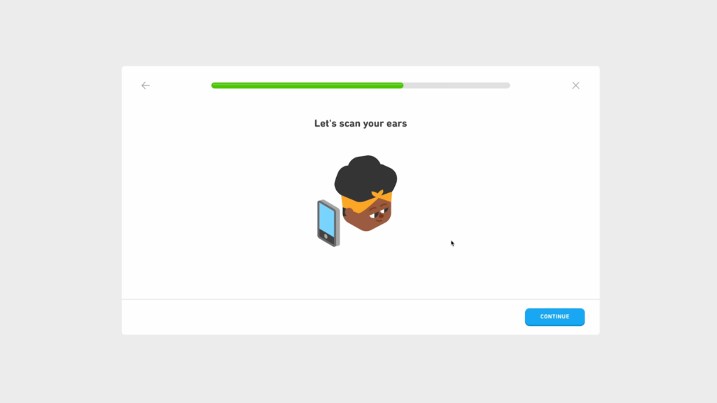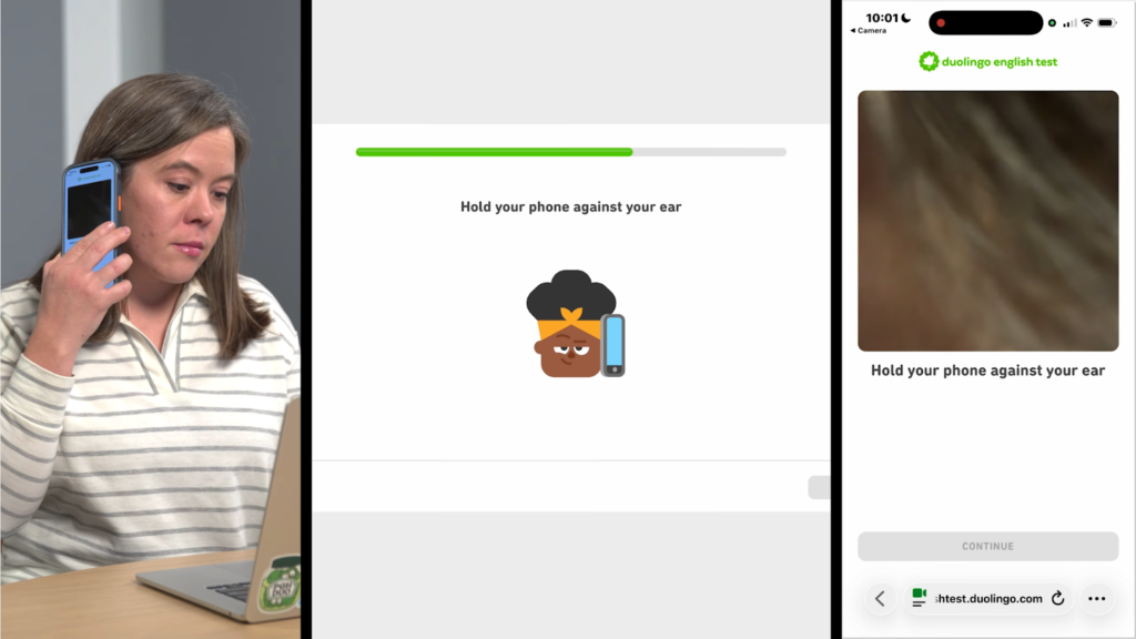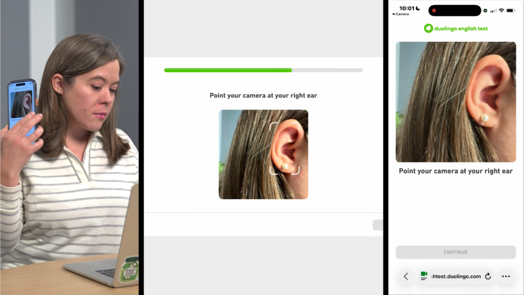 耳のスキャンは、Duolingo English Testの本試験前のセットアップ中に表示される指示に従って行うだけです。