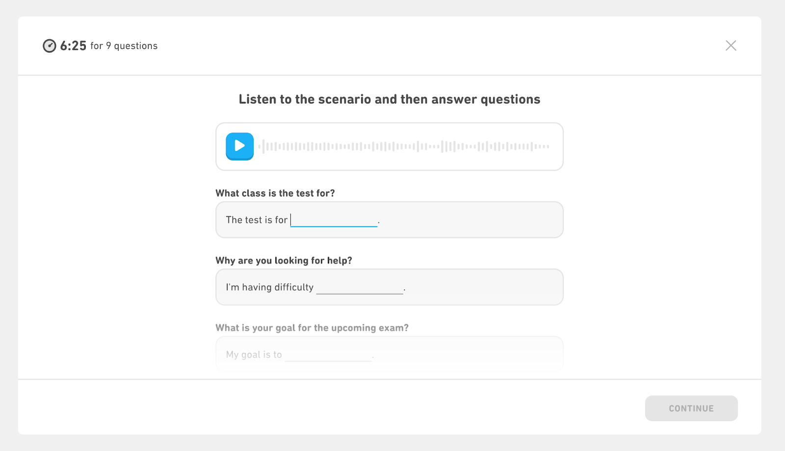 2025年10月現在、Duolingo English Testでは、次の13個の問題形式、全19種類の問題が出題されます。